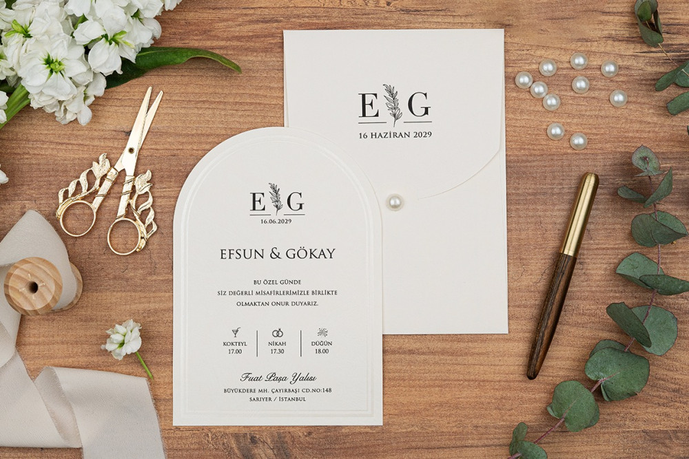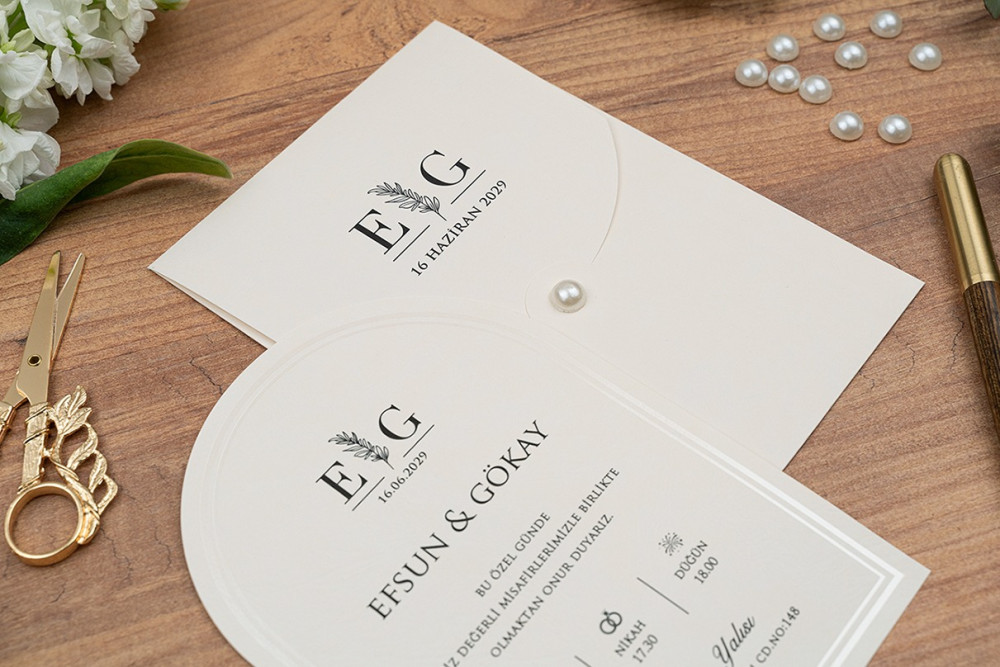 Zarfa isim baskı ise, davetiyenin zarfının üstüne gelin damat ismi, baș harfleri veya tarih bilgilerinin basılma ișlemidir. İsteğe bağlıdır.