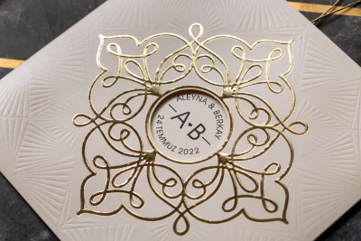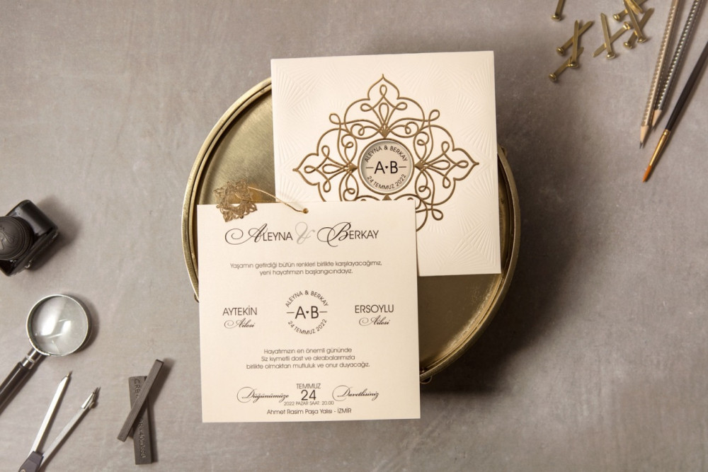 Modül kısmından "davetiye iç baskı" seçeneğini işaretlemek zorunludur! Aksi takdirde davetiyeler boş şekilde gönderilecektirVarak yaldız zorunlu olan davetiyelerde de "Varak Yaldız Baskı" seçeneği zorunludur. Aksi takdirde görseldeki gibi gelmeyecektir. Seçimlerinizi hatalı yapmanız durumunda görüntüdeki görsel gibi gelmeyecektir. Kafanızda soru işareti var ise ödemeniz öncesi bize ulaşın. Zarf isim baskı bazen zorunlu değildir. Resimdeki davetiyede zarfta isim varsa modül kısmından seçiniz.