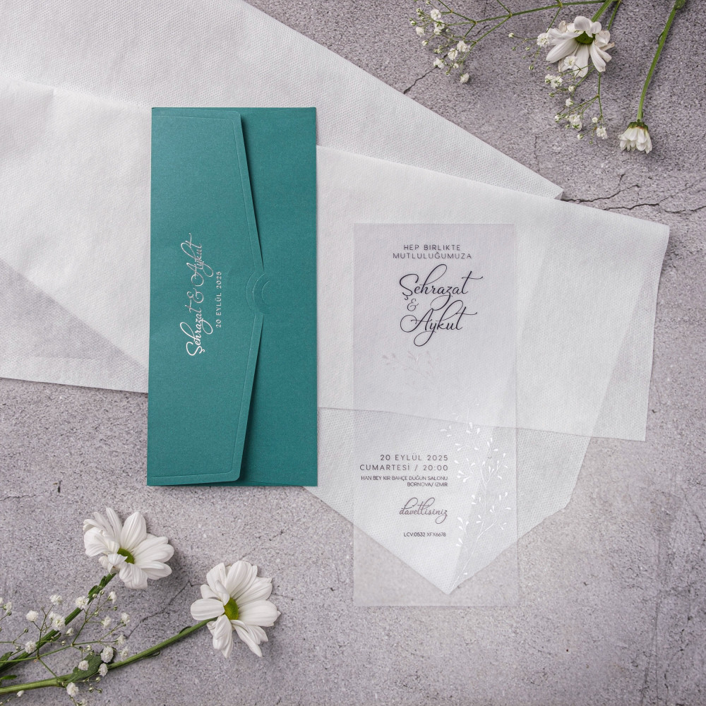 Zarflı modellerde zarf bedeli fiyata dâhildir. Bazı davetiye modellerinde tasarımlarından kaynaklı zarf bulunmaz.